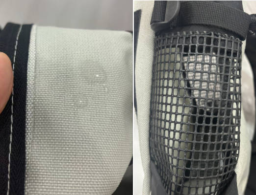 7.עמיד למים ונושם— תחתית הבד מצופה בשכבה אטומה למים, בעוד ששני צידי התרמיל כוללים חלונות אוורור גדולים מרשת העשויים מחומר PVC. חלונות רשת אלה מאפשרים זרימת אוויר טבעית במהלך הרכיבה על אופניים, ויוצרים מערכת זרימת אוויר פנימית הודות להבדלי הלחץ מהרוח.