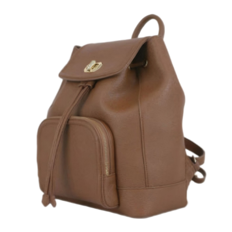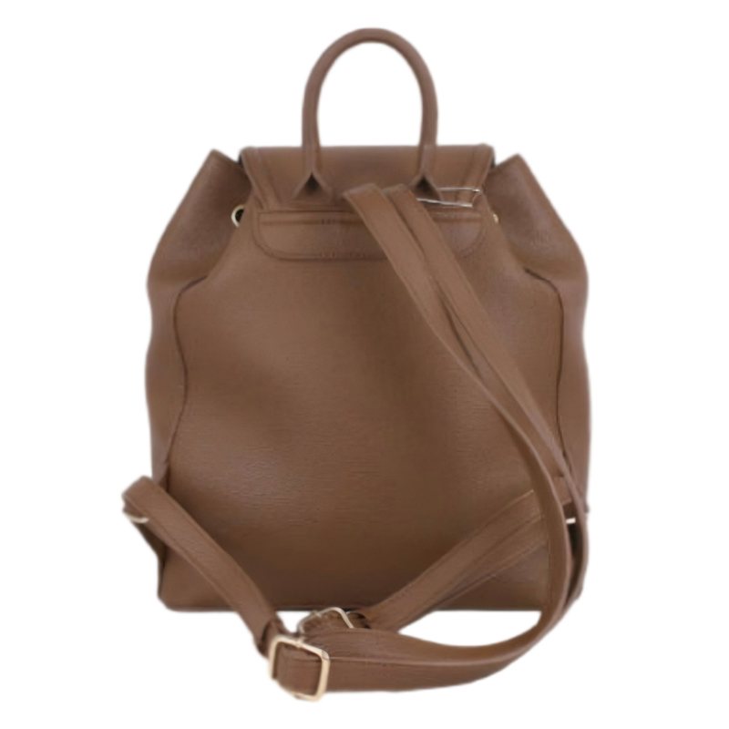 This stylish brown PU leather compact backpack combines functionality and sophistication in a sleek design. The practical yet fashionable swagger bag is perfect for women on the go, providing ample storage while maintaining a chic look.