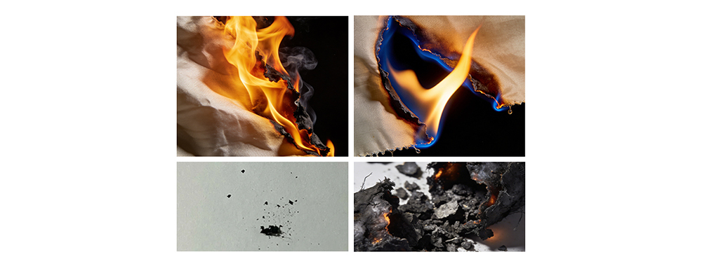 Polyester: After 5 minutes of exposure, it remains intact, with only slight curling of the fabric surface.