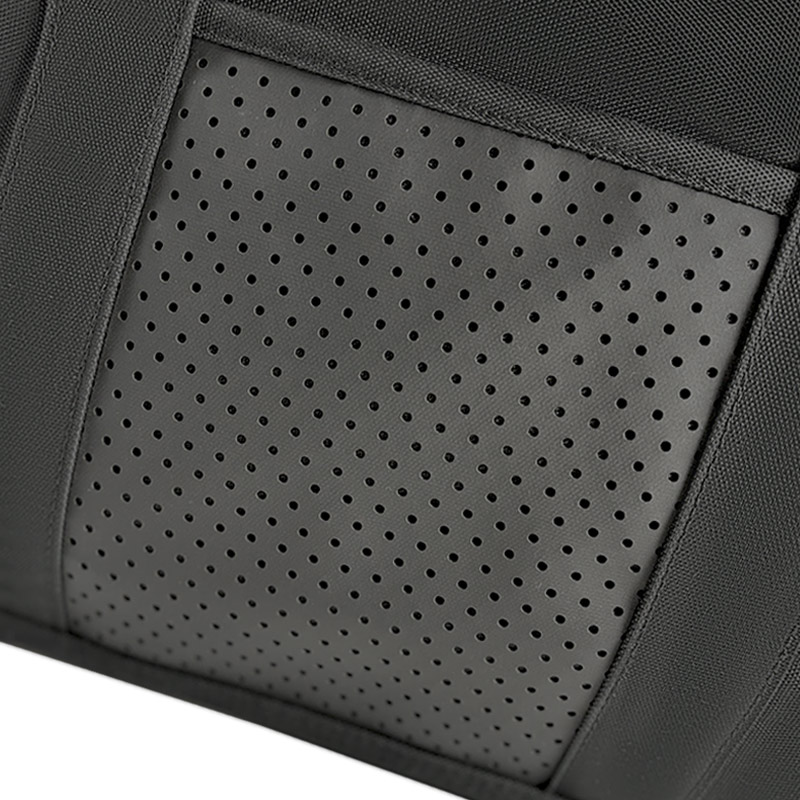 חזית התיק כוללת כיס אחסון נוח העשוי מבד EVA נושם ומחורר, המעניק לתיק מראה ייחודי ומסוגנן. כיס זה נהדר לאחסון פריטים בשימוש תכוף כמו טלפון, מפתחות או חפצים קטנים חיוניים אחרים. בצד שמאל, יש גם כיס רשת לציוד ספורט קטן או בקבוק מים, בעוד שבצד ימין יש תא נעליים לשמירה על נעליים רזרביות נפרדות משאר החפצים שלכם.